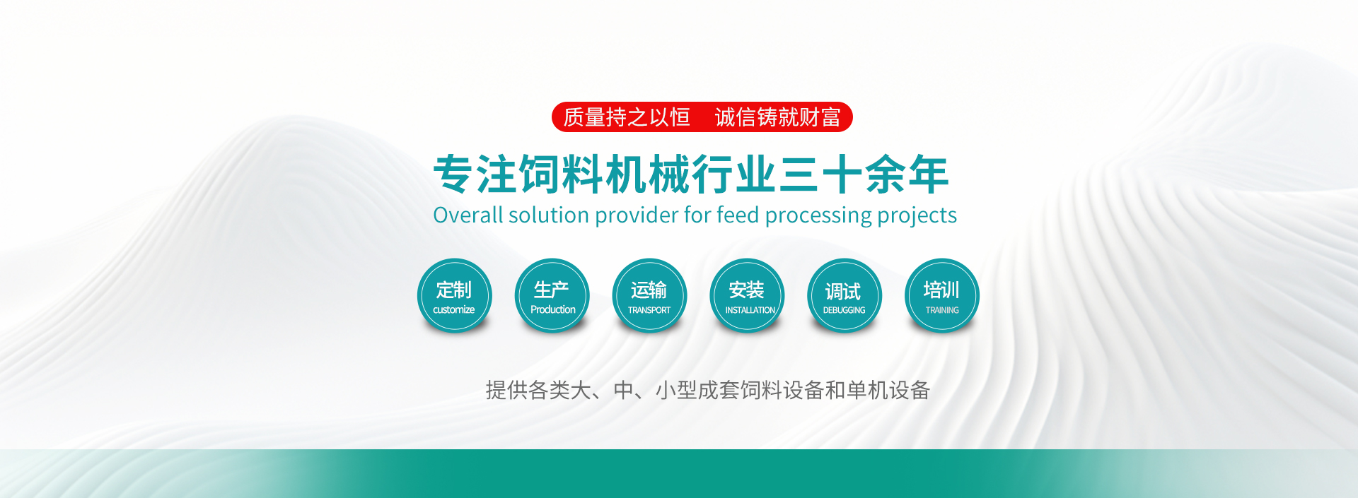 我公司一直致力于饲料机械的研发和生产,目前主要产品有:SFSP系列水滴式粉碎机、SLHY单轴双螺旋混合机、SSHJ双轴桨叶式混合机、SDHJ单轴桨叶式混合机、GH系列转鼓式混合机、SZLH系列环模制粒机、9FQ系列多功能粉碎机、塔式烘干机、镀锌钢板仓、斗式提升机、刮板输送机、螺旋提升机及其他配套辅助设备。公司结合国内外先进技术工艺,通过不断的引进、吸收、研发、创新,生产出一批具有科技含量高、实用性能强的饲料机械产品,并通过ISO9001-2008、CE、BV认证。优质的产品结合专业的销售服务队伍,赢得了无数客户的青睐,产品畅销全球60多个国家和地区。